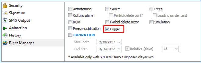 在SOLIDWORKS Composer 2018本功能又得到了增強(qiáng),增強(qiáng)的目的是對(duì)該功能進(jìn)行權(quán)限控制,以便在某些技術(shù)保密性強(qiáng)的產(chǎn)品中,禁止開(kāi)啟該功能。